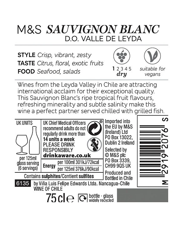 Brand new 🎁 Wine, Beer & Spirits Leyda Sauvignon Blanc – Case Of 6 🎁