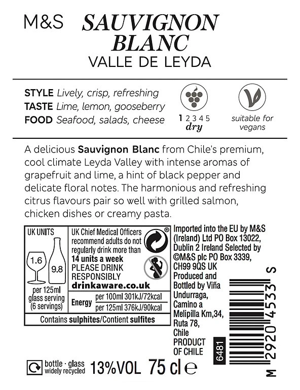 A delicious Sauvignon Blanc from Chile’s premium, cool climate Leyda Valley with intense aromas of grapefruit and lime, a hint of black pepper and delicate floral notes. The harmonious and refreshing citrus flavours pair so well with grilled salmon, chicken dishes or creamy pasta.